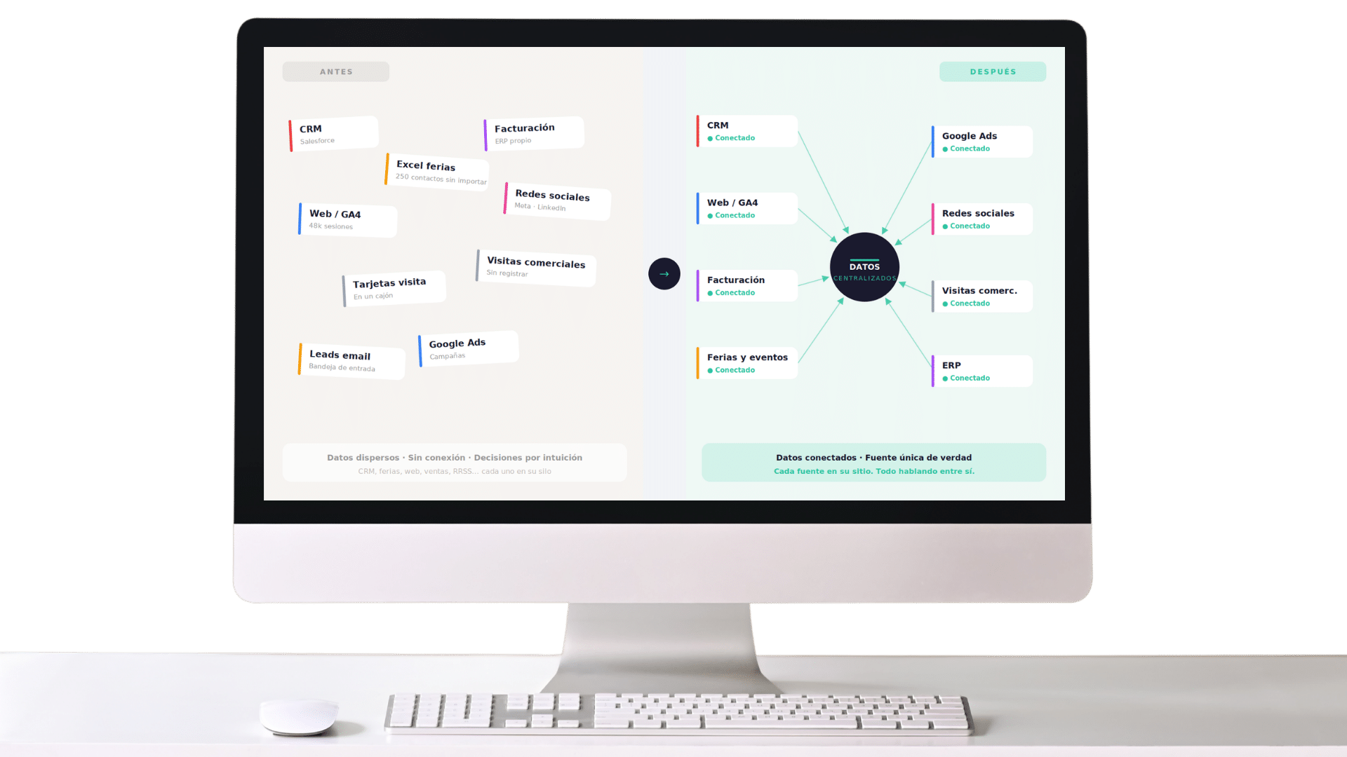 Empresas de 5 personas tienen el mismo problema que empresas de 500: datos en sitios distintos que nadie ha unificado.