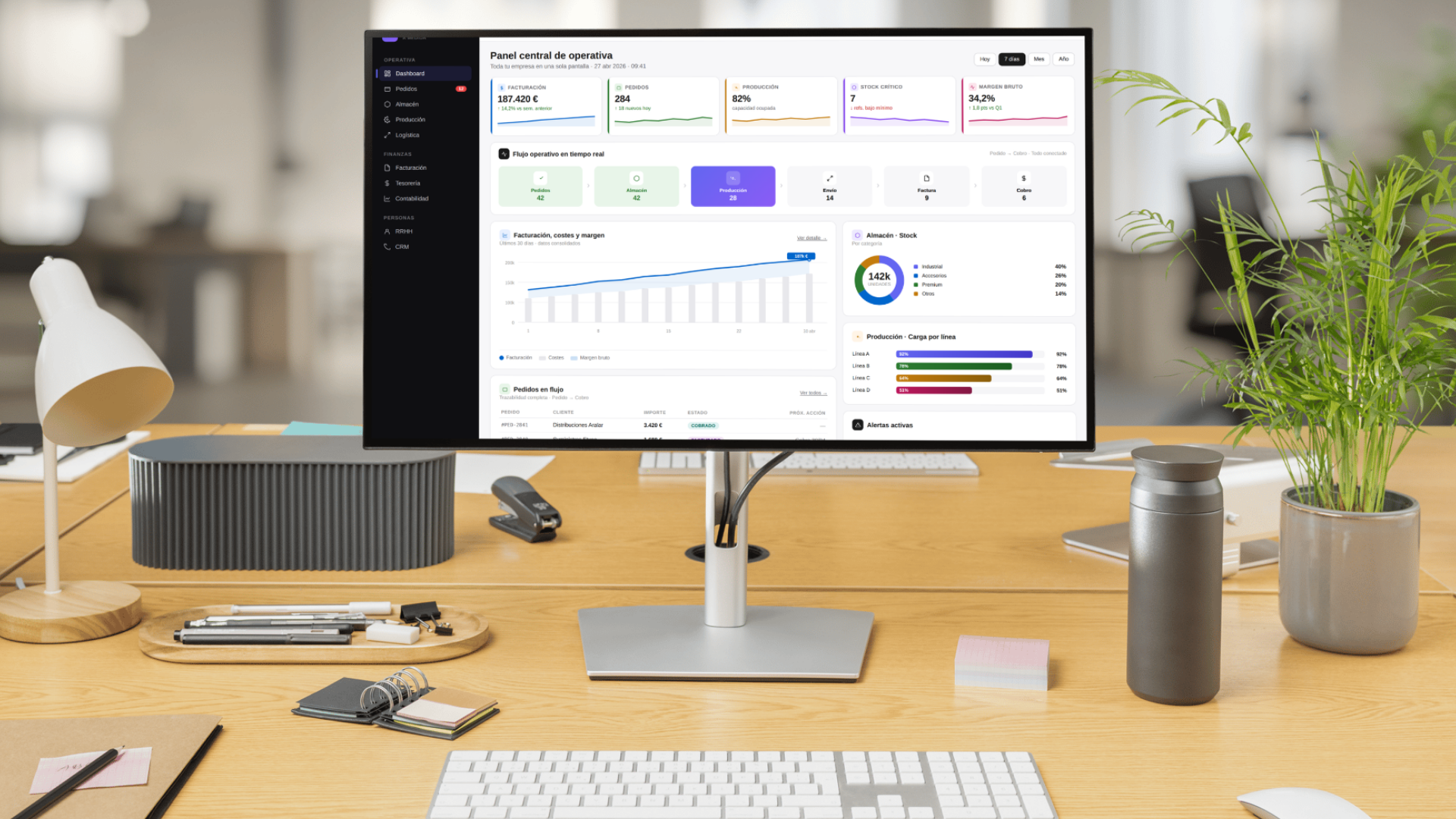 Sistema de gestión empresarial integrado: facturación, stock, producción, CRM y contabilidad en una sola plataforma