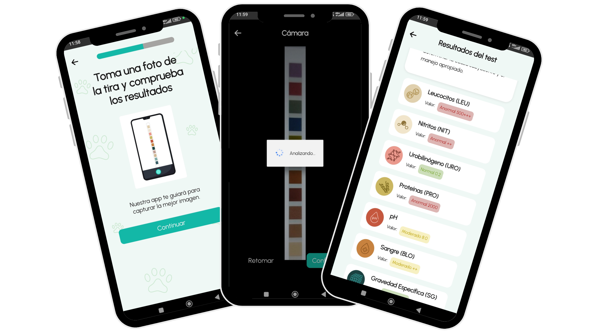 Sí. La misma base tecnológica de visión artificial se adapta a cualquier test que funcione por Sí. Los datos de análisis y el historial de cada mascota se almacenan de forma segura dentro de la app. No se comparten con terceros ni se utilizan para fines distintos a la monitorización de la salud del animal.